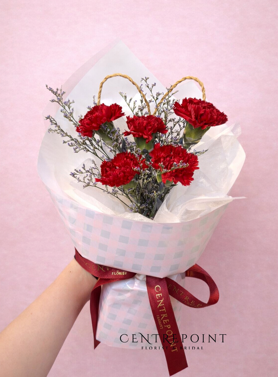 Flower : 5 stalk of fresh red carnations