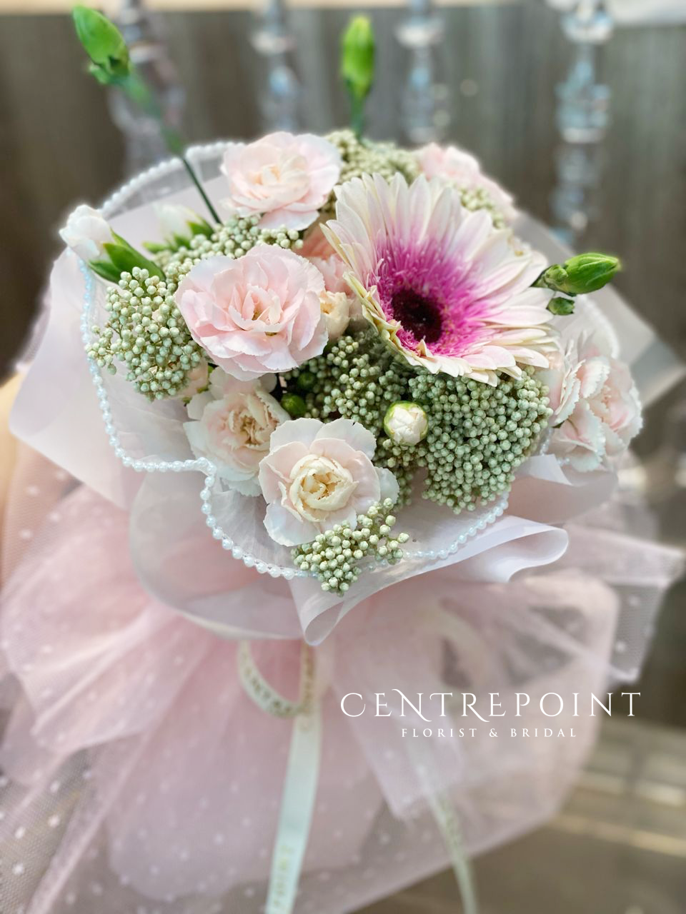 Flower : 1 stalk of daisy + carnations spray + rice flowers