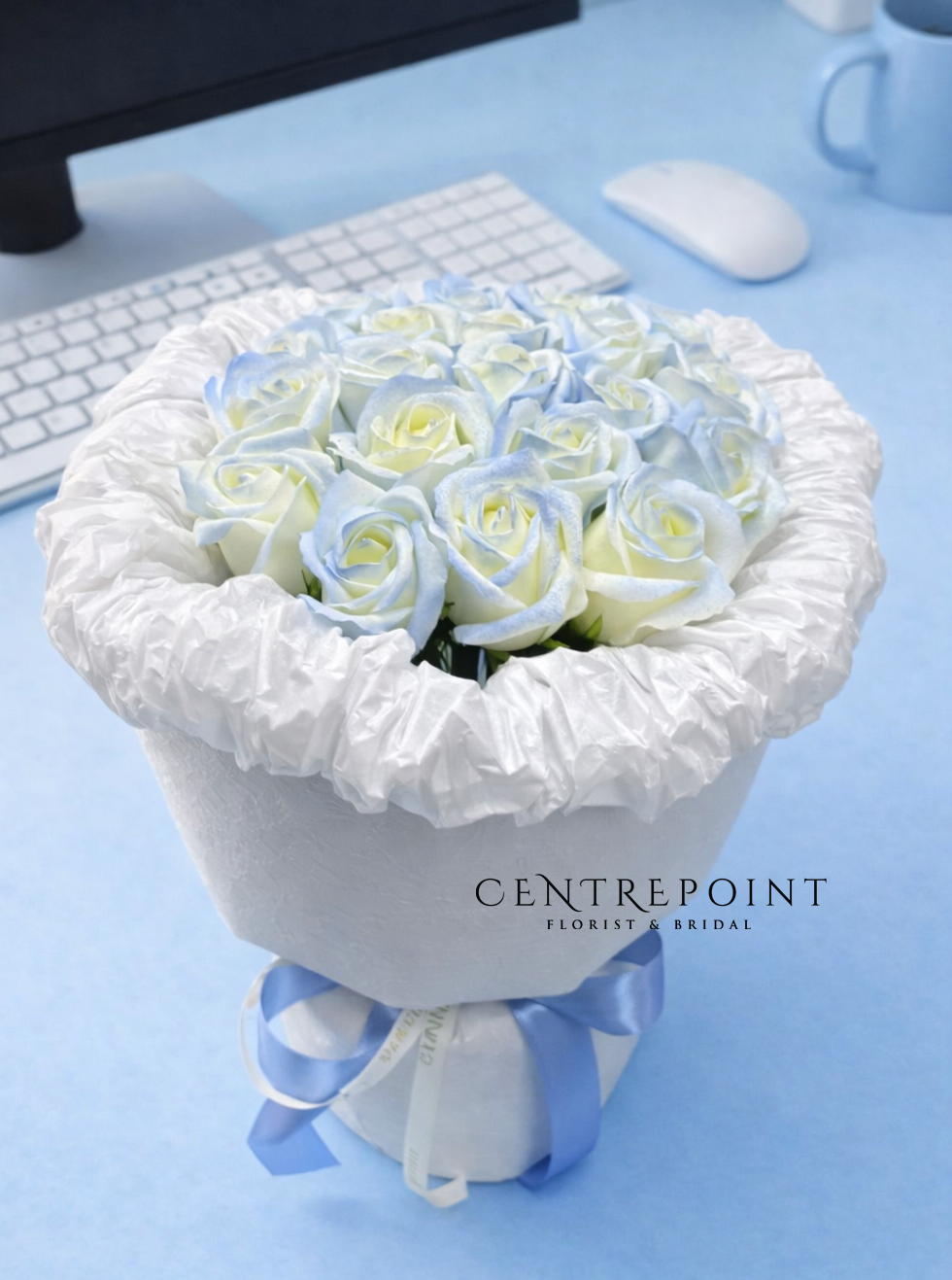 Flower : 16 stalk of soft baby blue soap flower roses with special packing