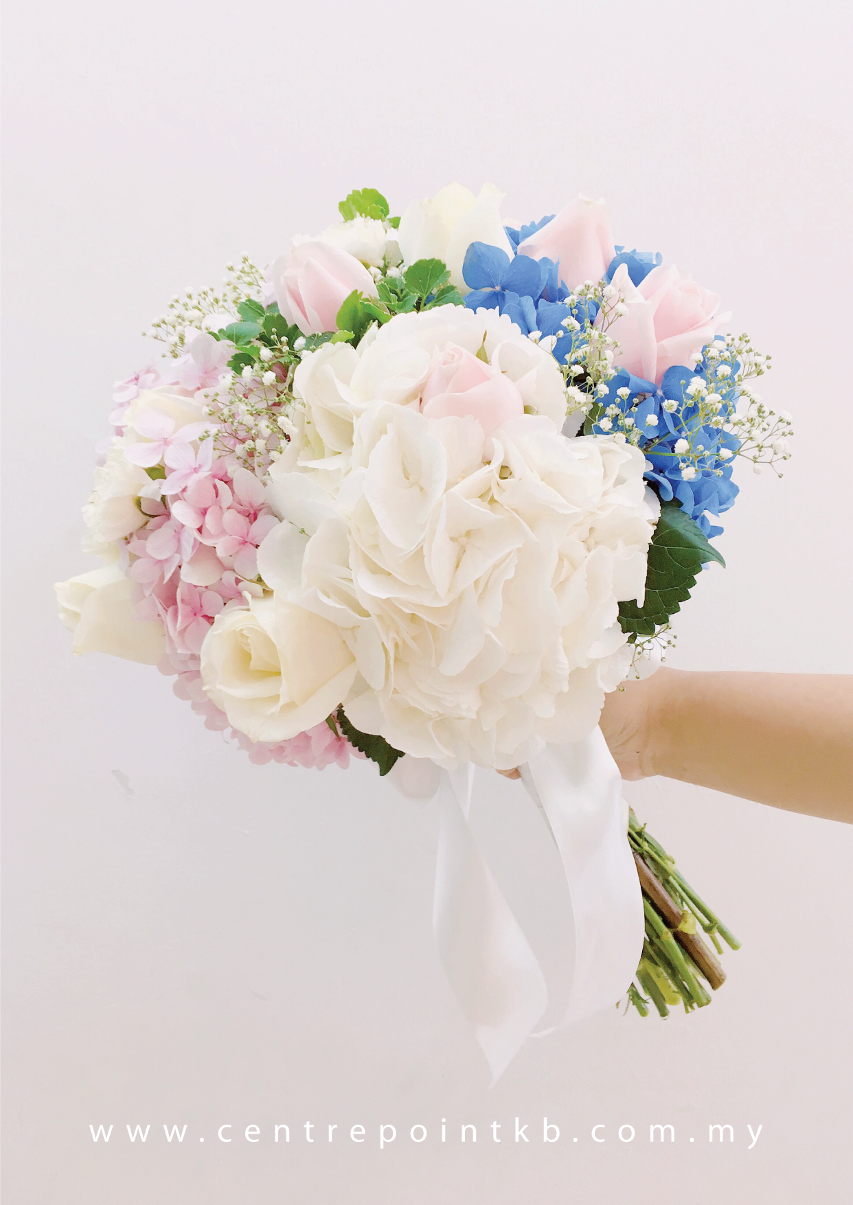 Flower : White, Pink & Blue Hydrangeas + White & Pink Roses + White Carnations
