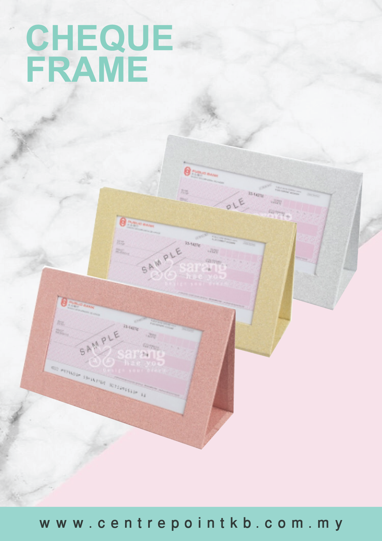 Desk calendar type cheque frame to display the dowry from the groom to the bride. Available in 3 colours: Gold, Silver and Rose Gold