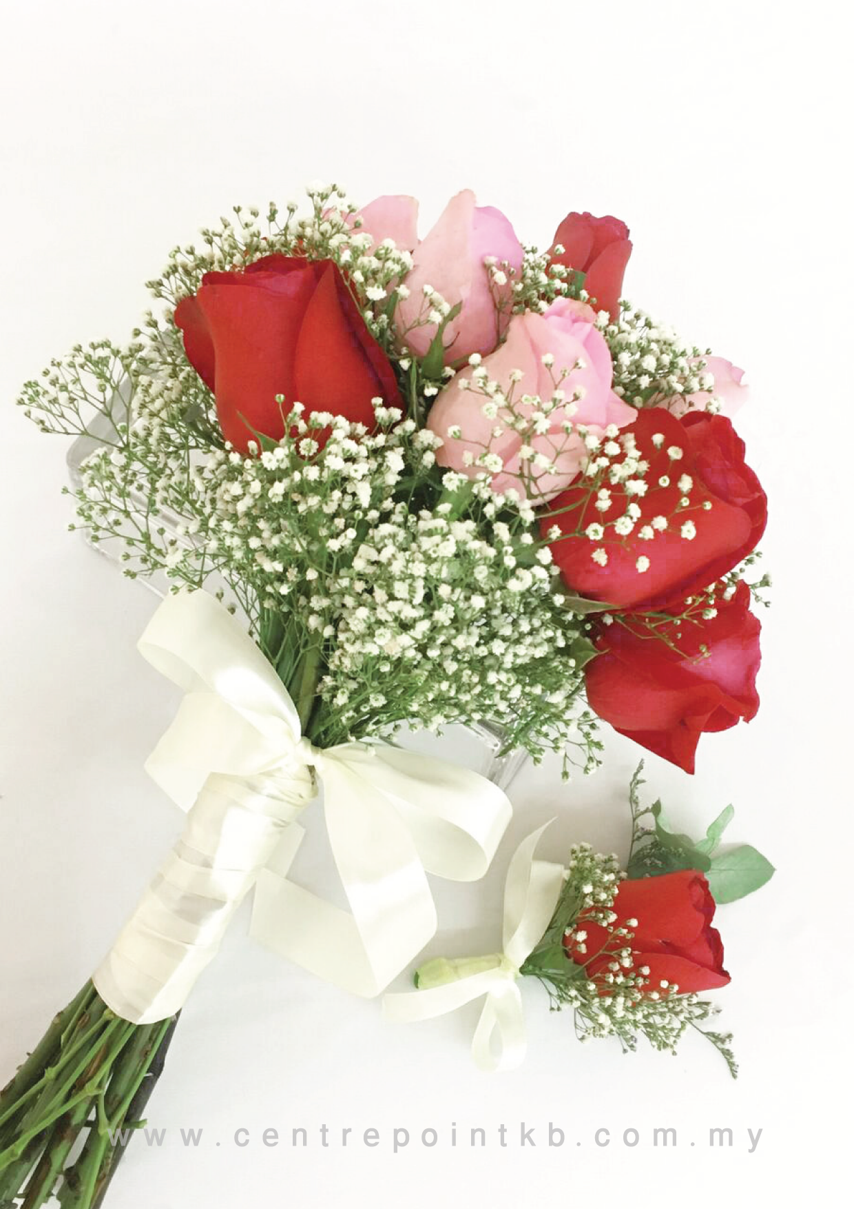 Flower : 12 stalk of roses & baby breathe