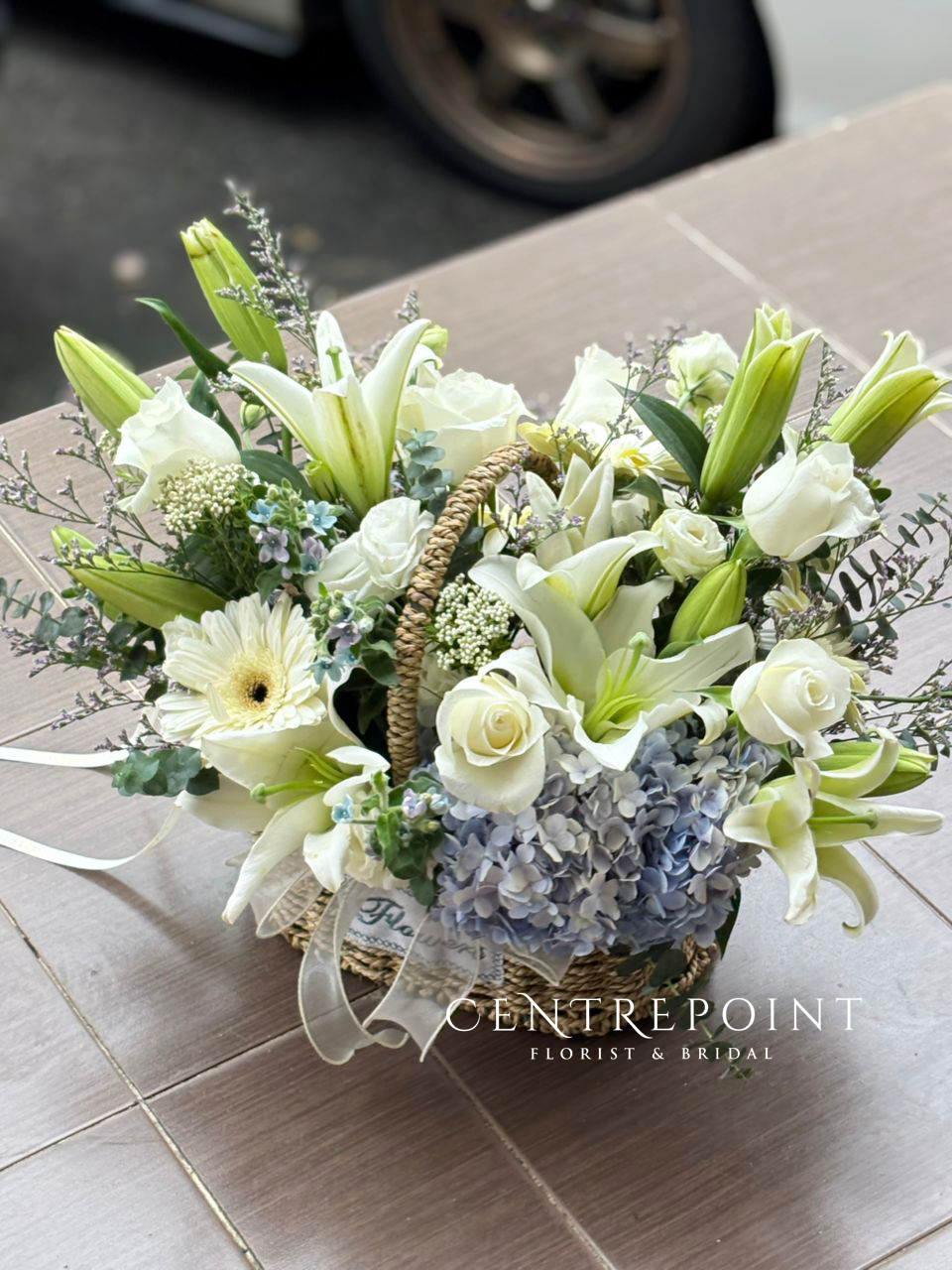 This beautiful flower basket is suitable for house warming or someone in need of attention.