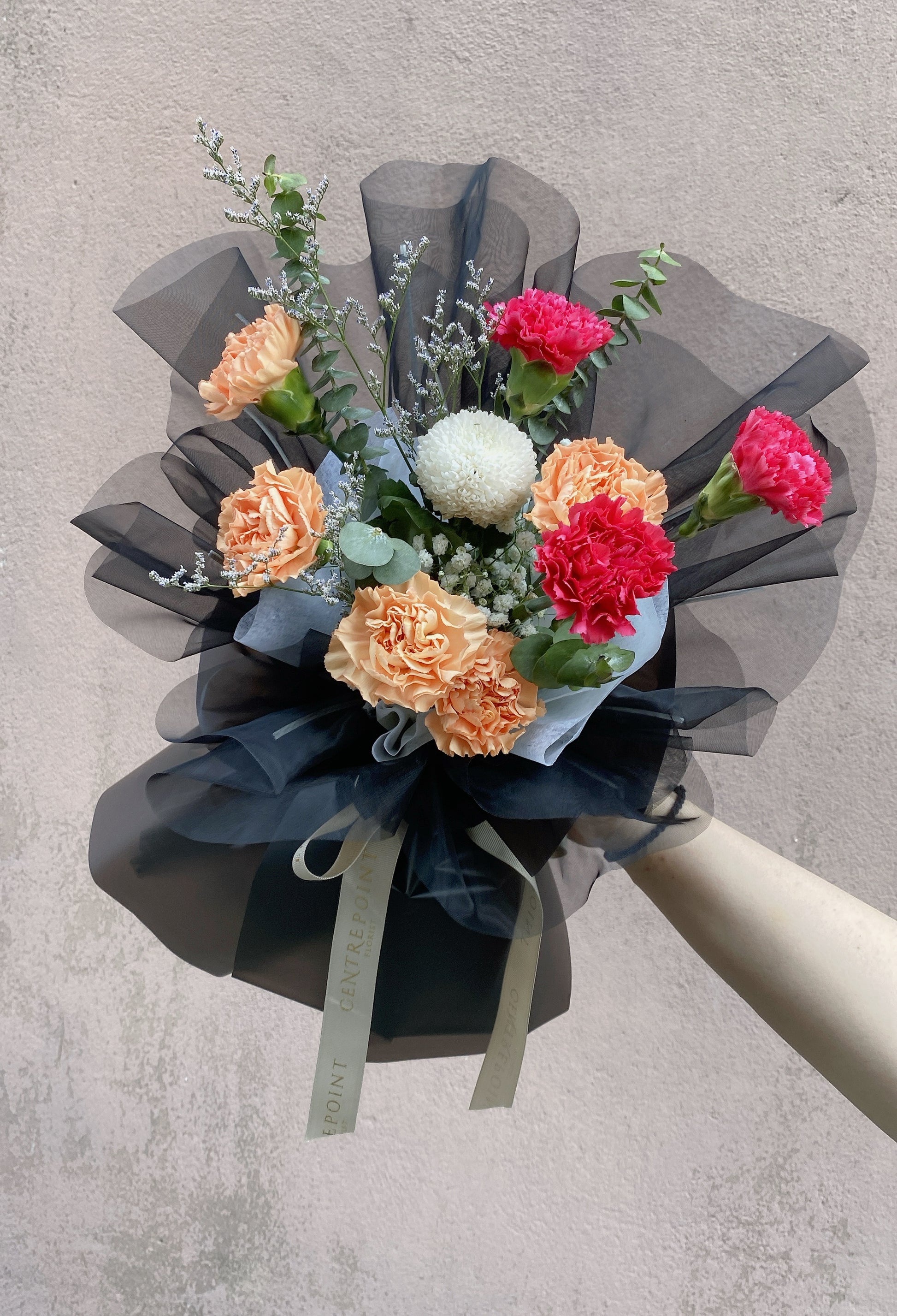 Flower : 8 stalk of carnations & 1 stalk of ping pong with pearl heart shaped