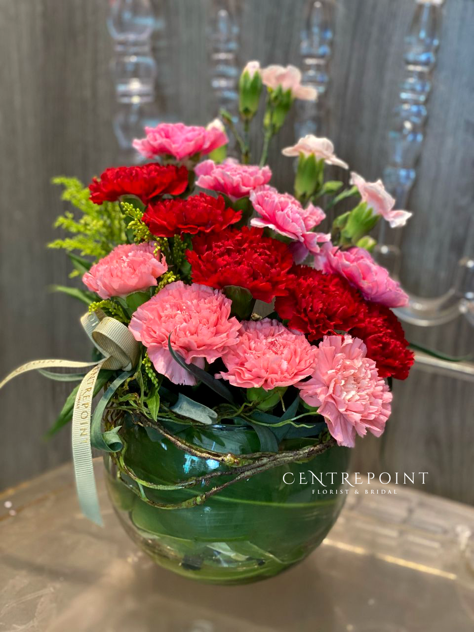 Flower : 13 stalk of fresh mixed carnations with some fillers + Premium vase