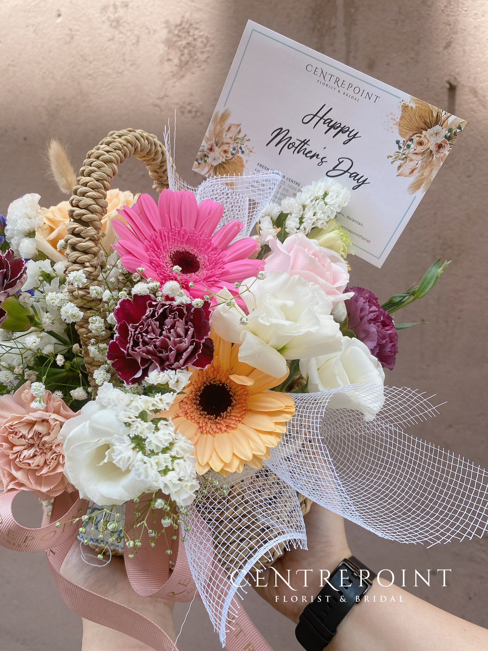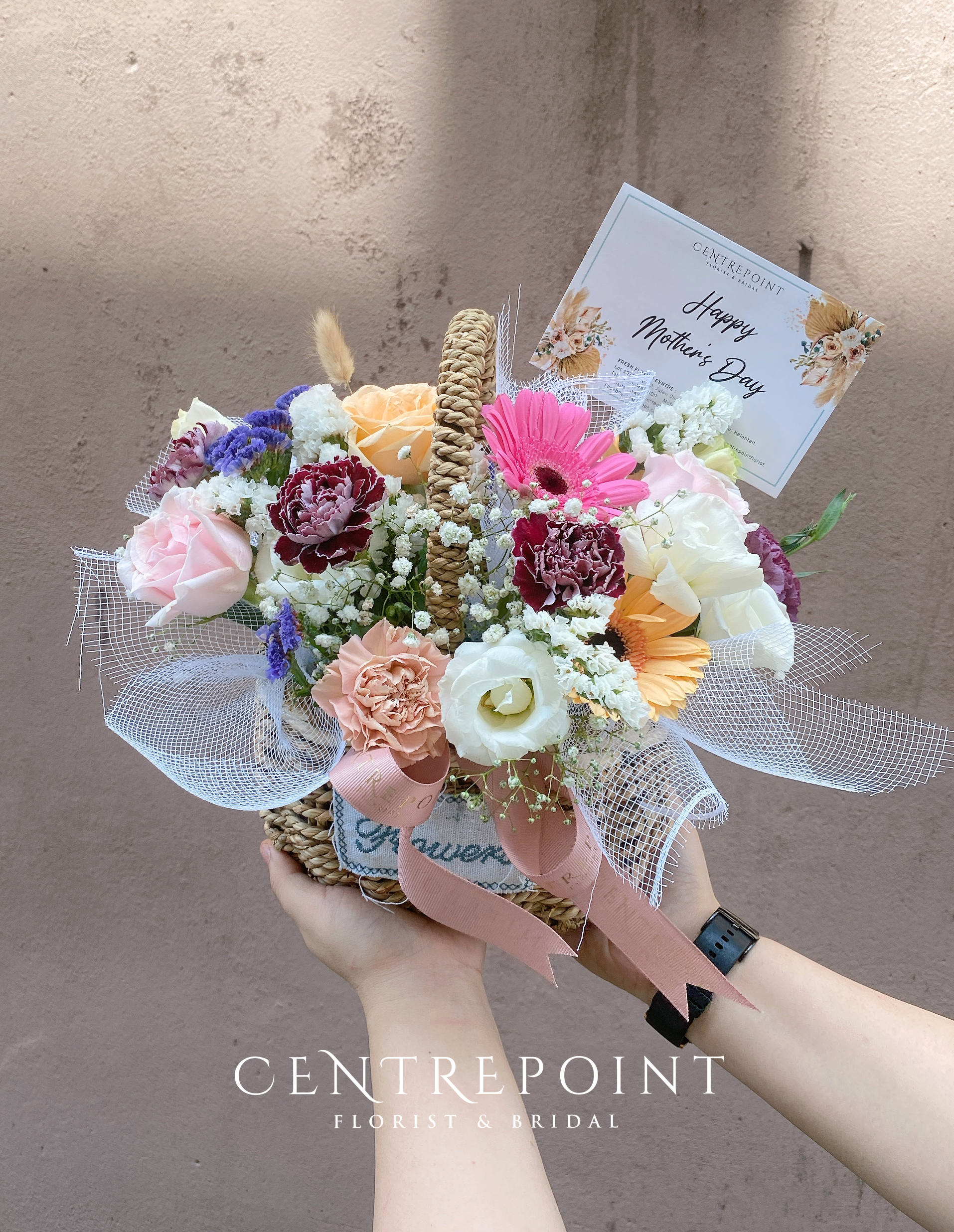 Flower : 12 stalk of mix flowers in a premium rattan basket
