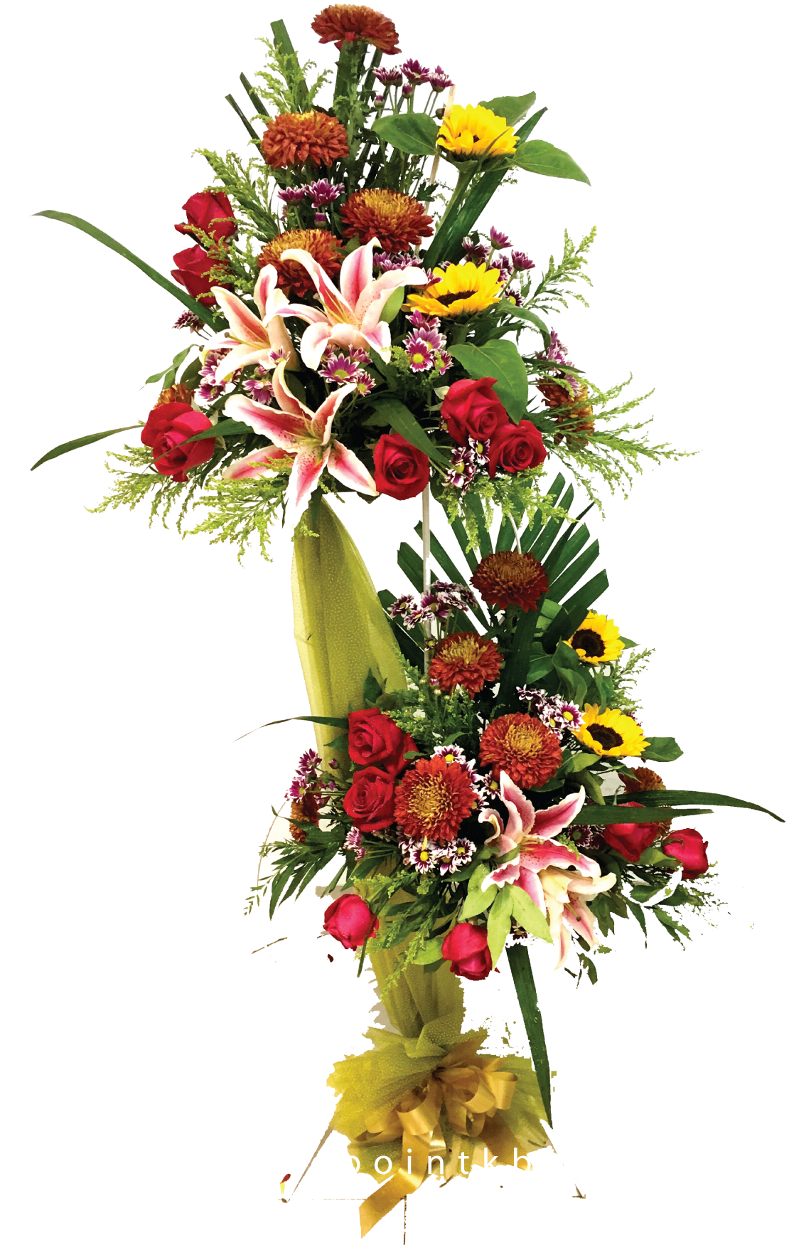 A 2 layer congratulatory flower stand suitable for any grand openings or happy ceremonies/occasions! Send your blessings and best wishes to the ones you care.