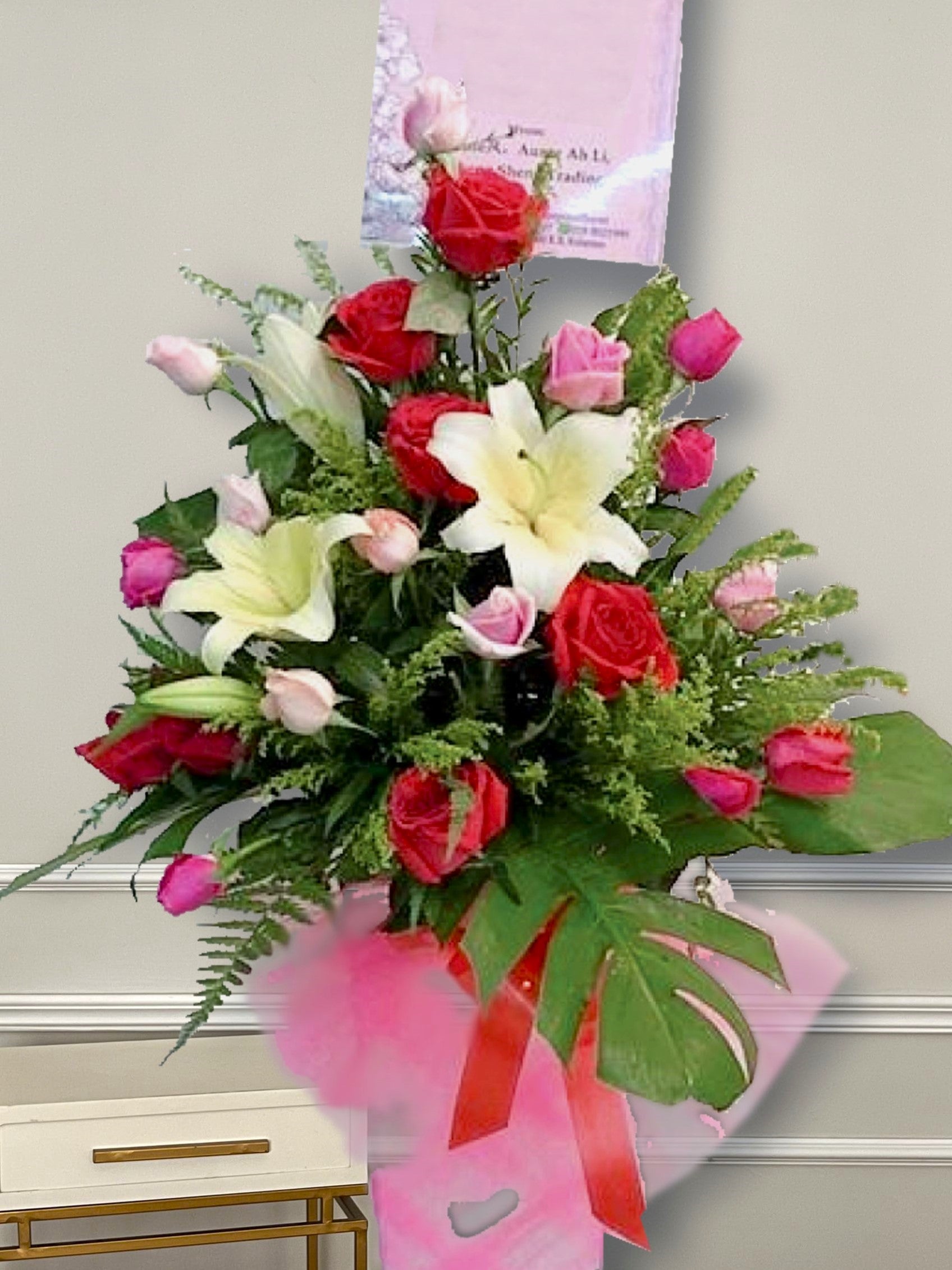 Card message will be sent together with the flowers with no addition