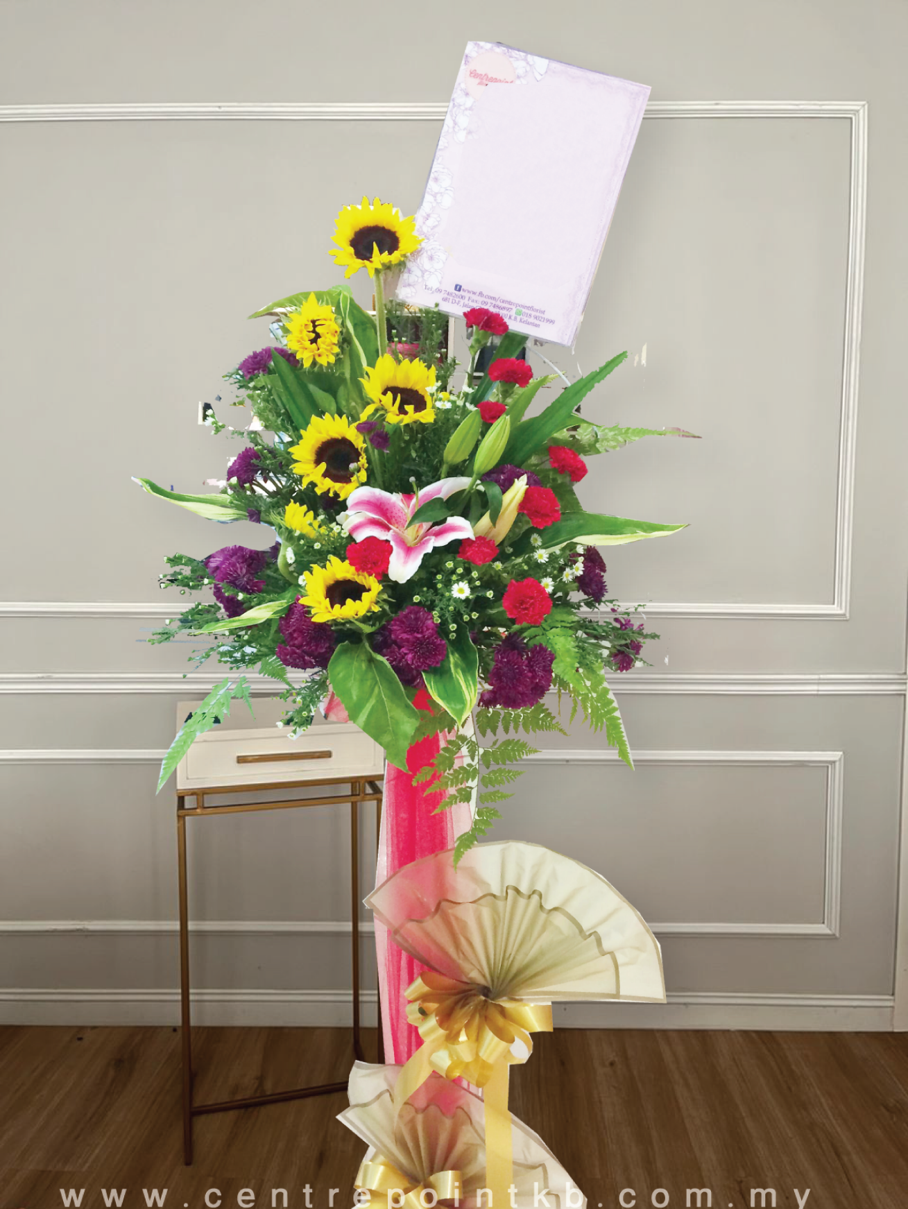 One layer congratulatory flower stand for any grand openings or happy ceremonies. Send your blessings and best wishes to the ones you care.