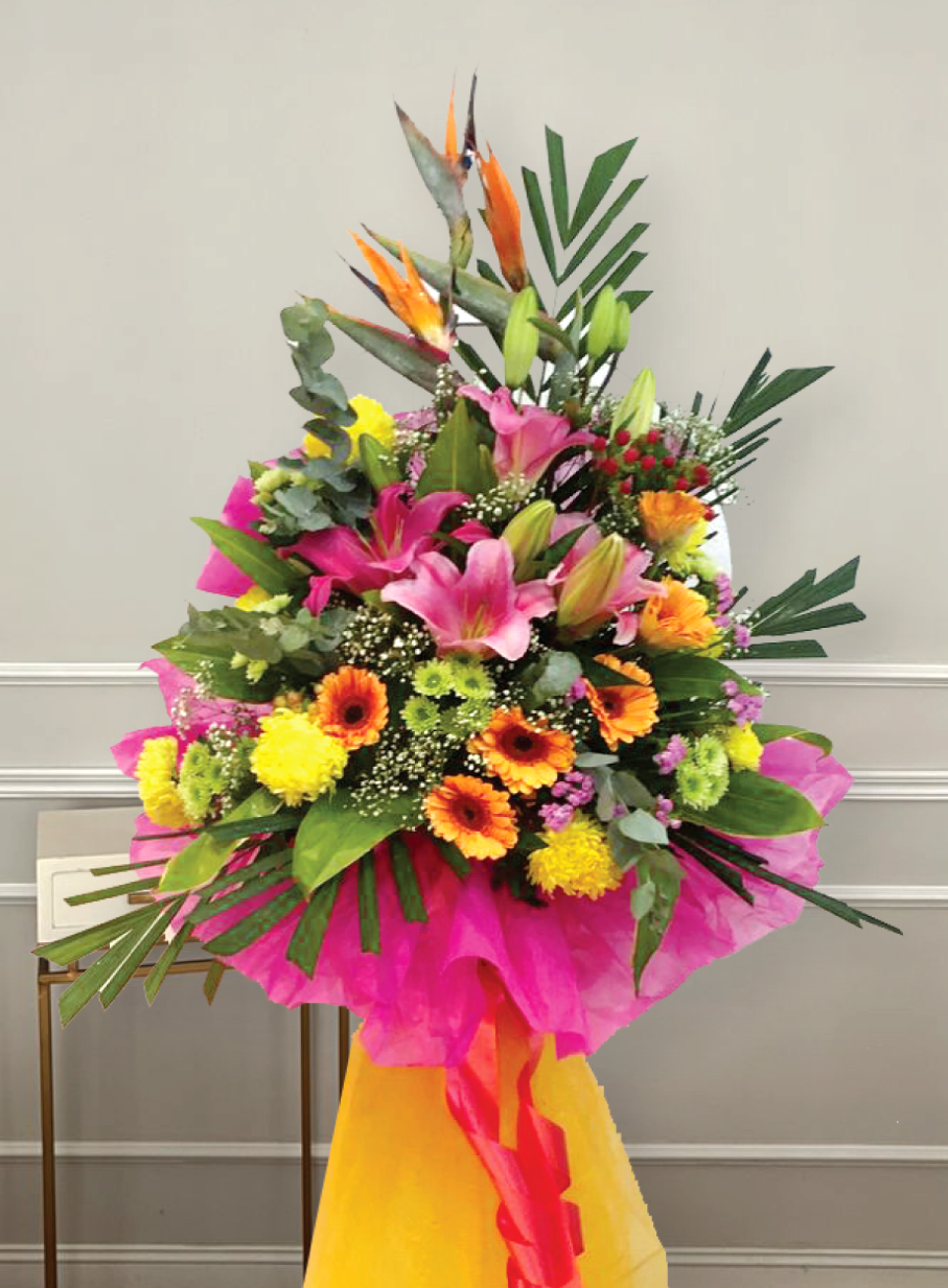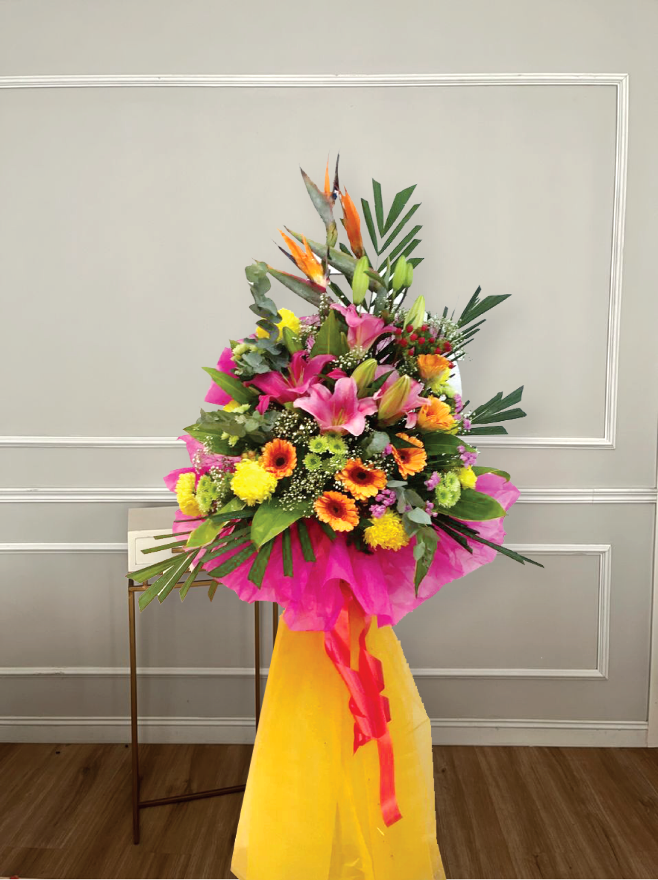 One layer congratulatory flower stand for any grand openings or happy ceremonies. Send your blessings and best wishes to the ones you care.
