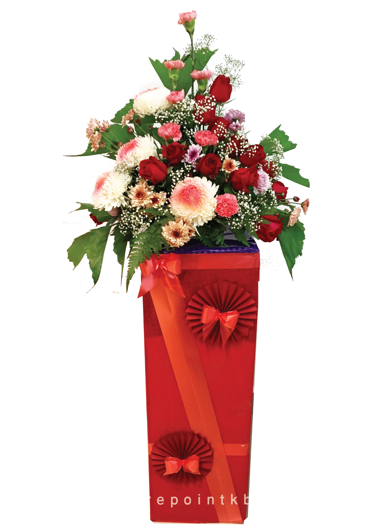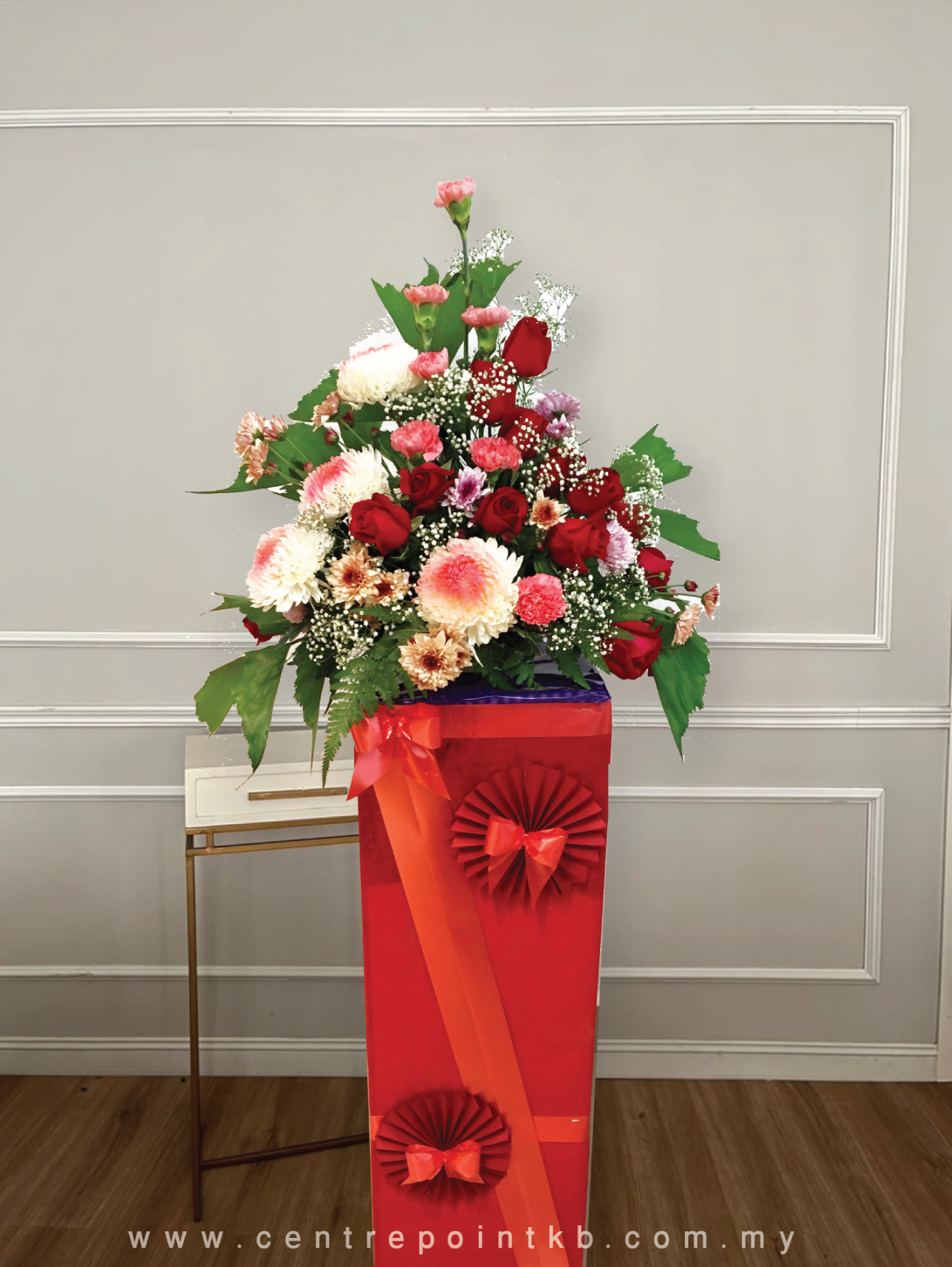 Stand kotak bunga taniah satu lapis ini sesuai untuk upacara pembukaan rasmi dan majlis/pesta yang meriahkan. Hantarkan hajat anda kepada orang yang tersayang menunjukkan perasaan anda.