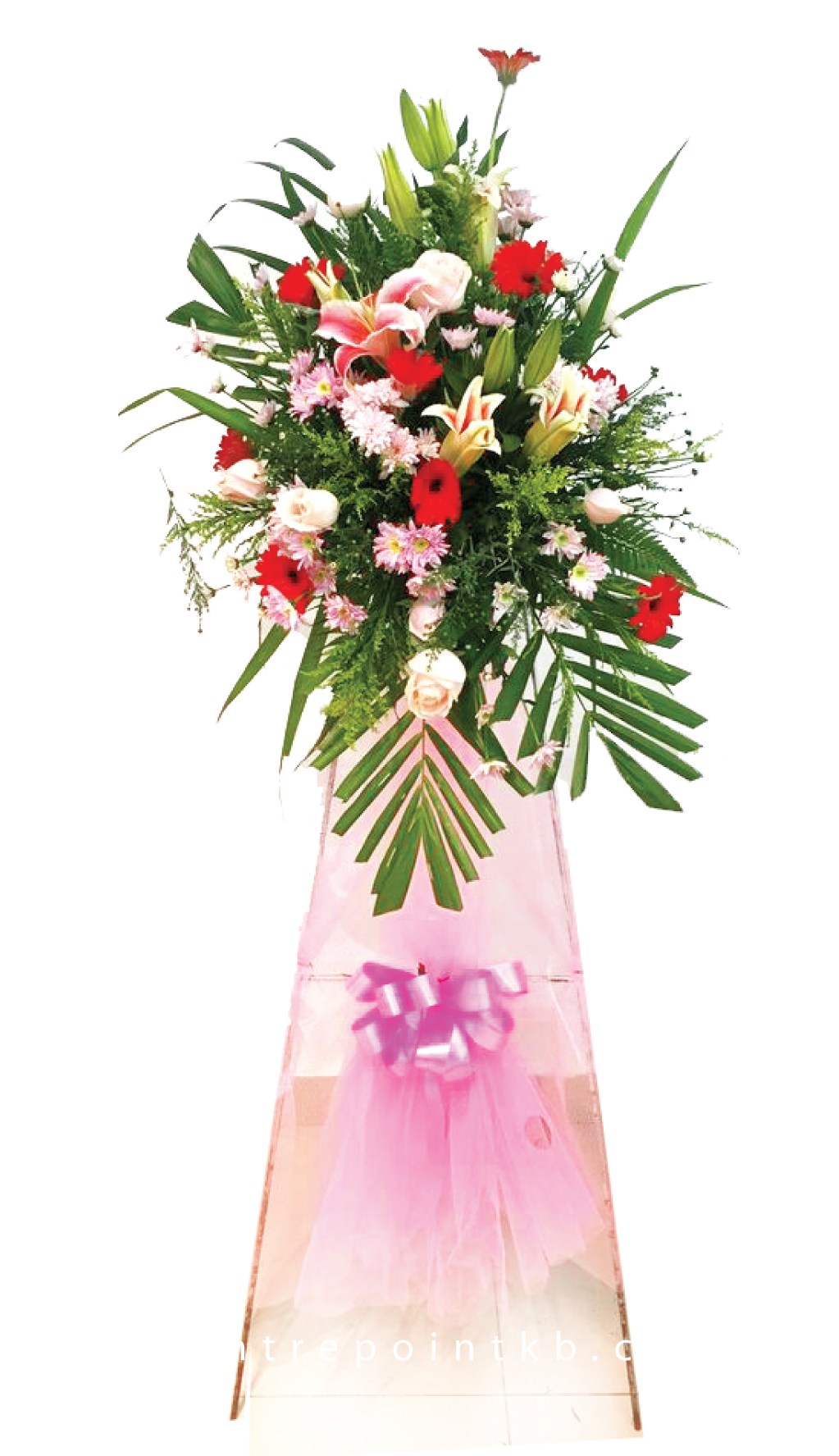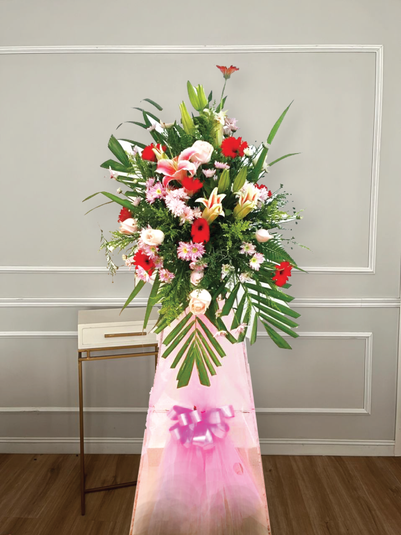 One layer congratulatory flower stand with special confetti balloon for any grand openings or happy ceremonies. Send your blessings and best wishes to the ones you care.