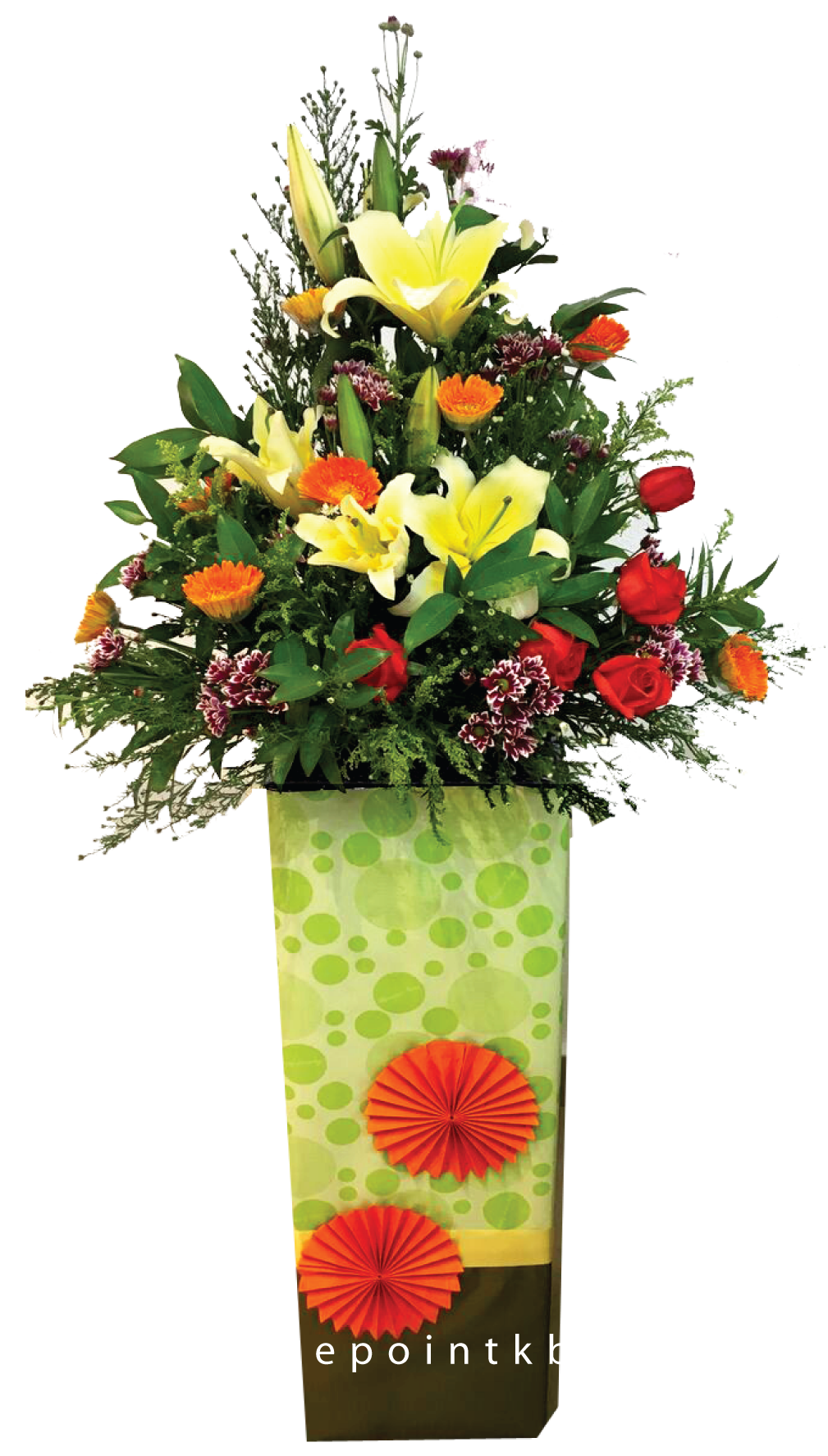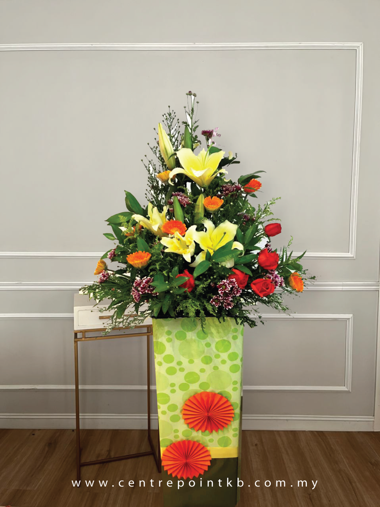 One layer congratulatory flower stand with special confetti balloon for any grand openings or happy ceremonies. Send your blessings and best wishes to the ones you care.