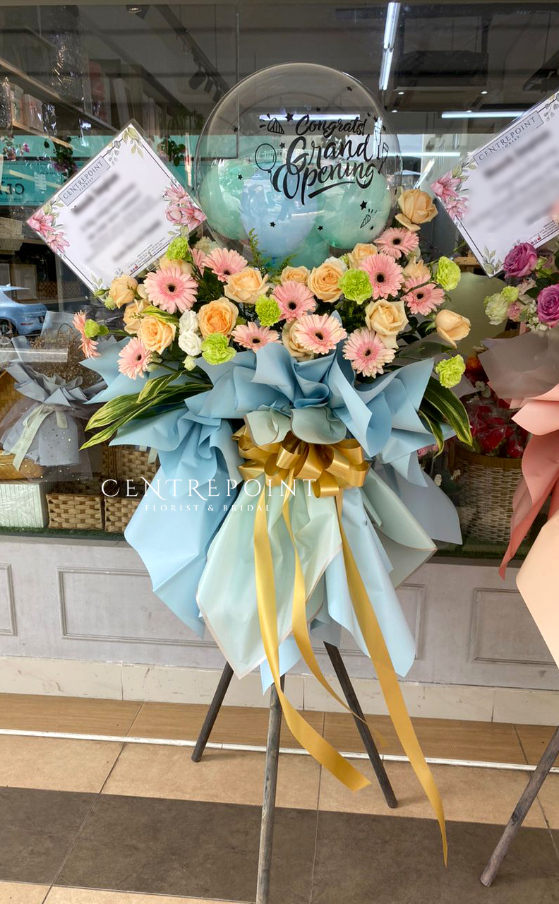 One layer congratulatory flower stand with special confetti balloon for any grand openings or happy ceremonies. Send your blessings and best wishes to the ones you care.