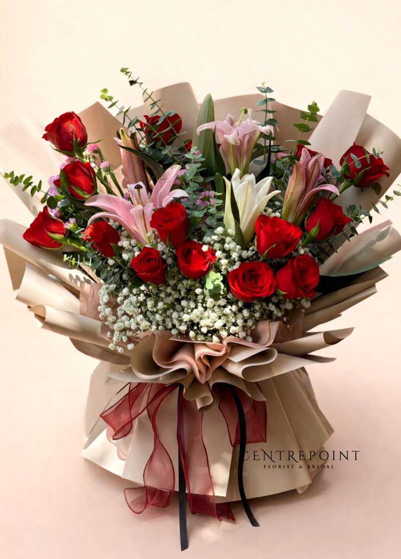 Flower : 14 stalk of roses and 4 stalk of lilies with special packing