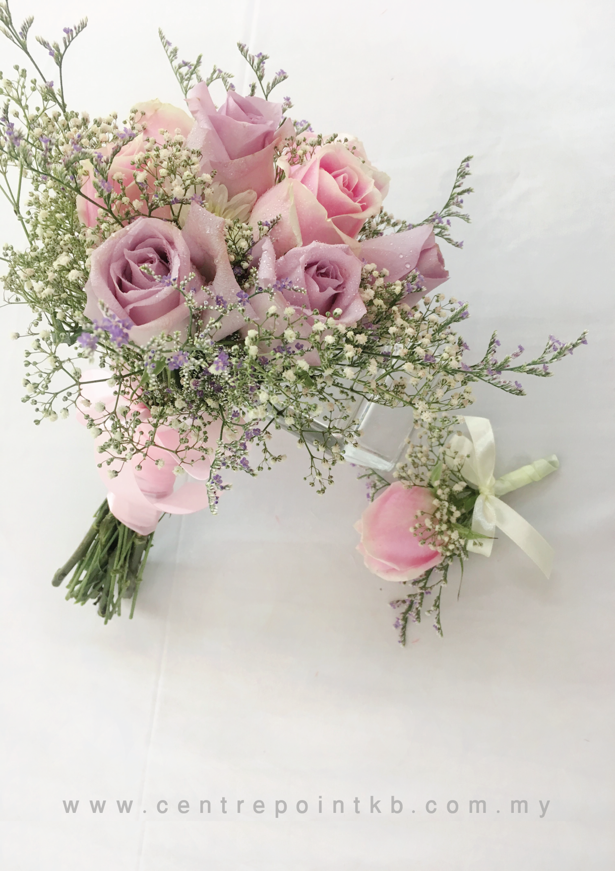 Flower : 8 stalk of Roses + Baby Breath + Caspia