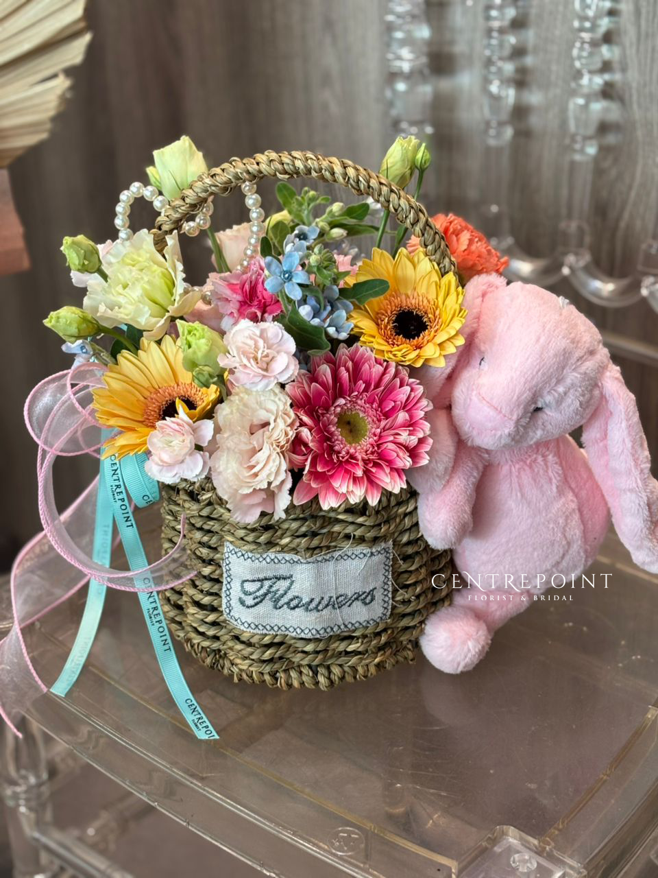 Flower : mixed of flower with rattan basket with a premium rabbit