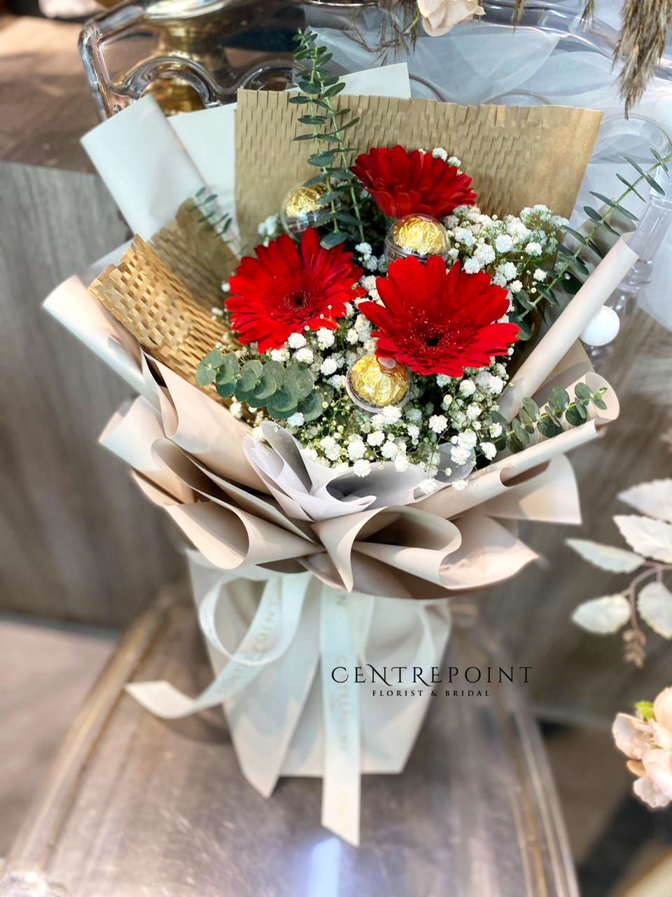 Flower : 3 stalk of daisy with 3 pieces of ferrero rochers