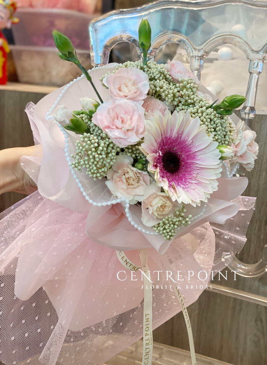 Flower : 1 stalk of daisy + carnations spray + rice flowers