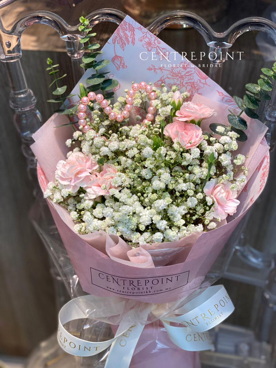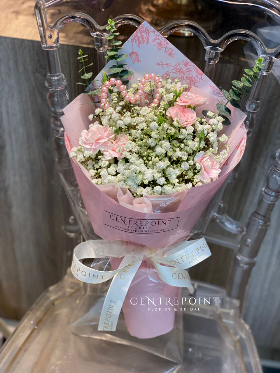 Flower :carnations spray with baby breath