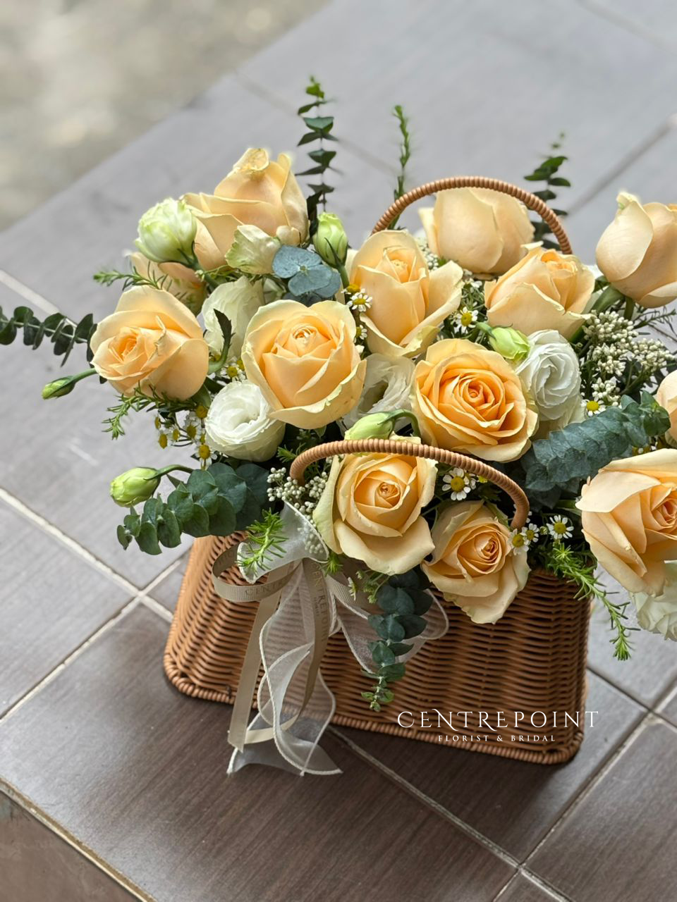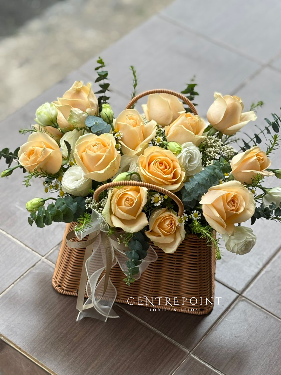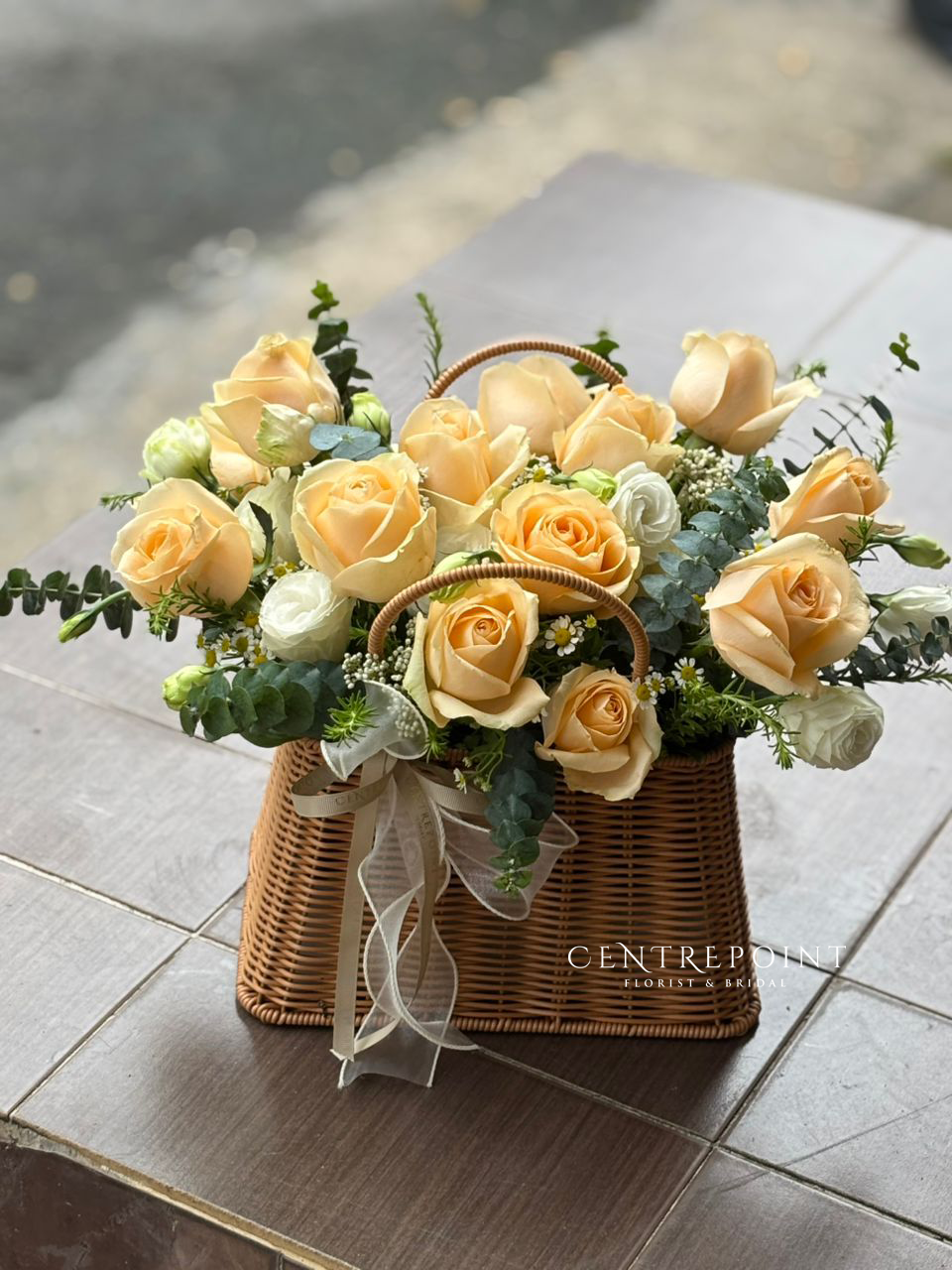 Flower : roses in premium rattan basket
